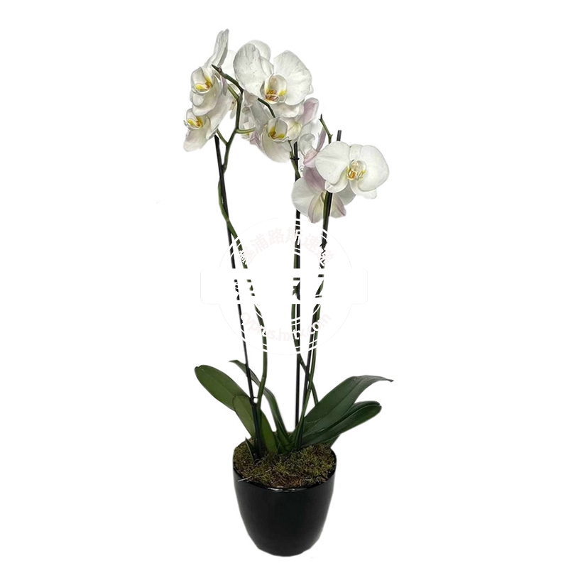 描述: 白花三茎蝴蝶兰绿植、花盆装。